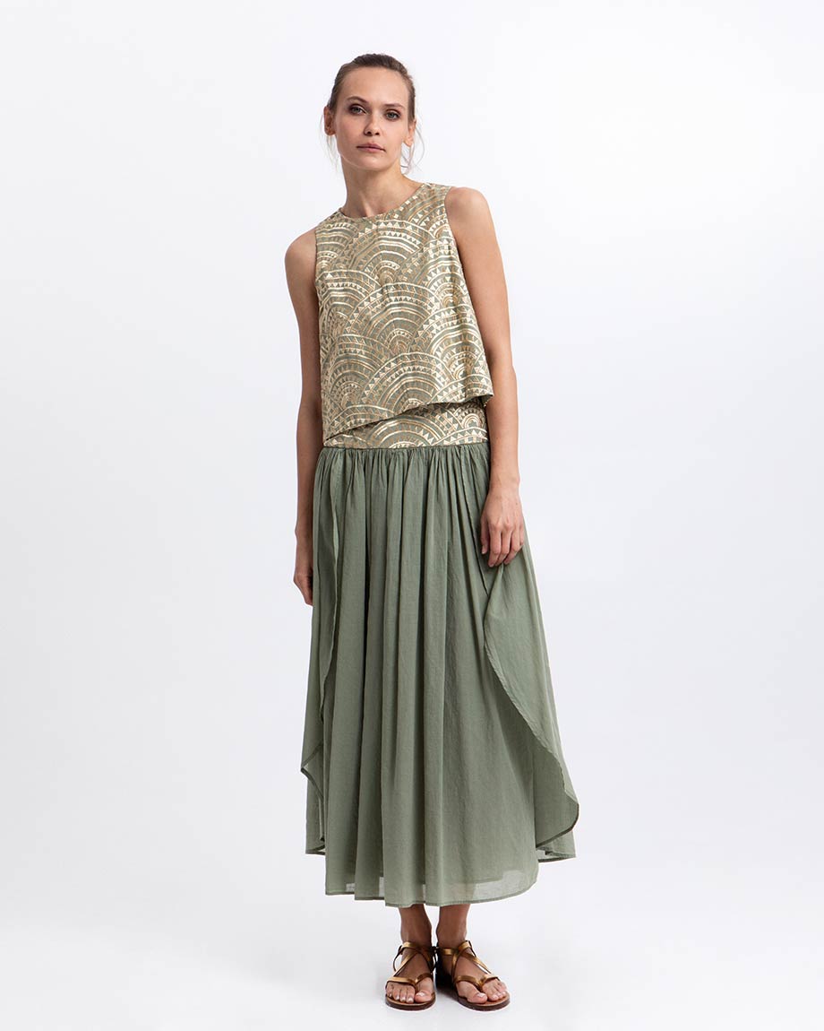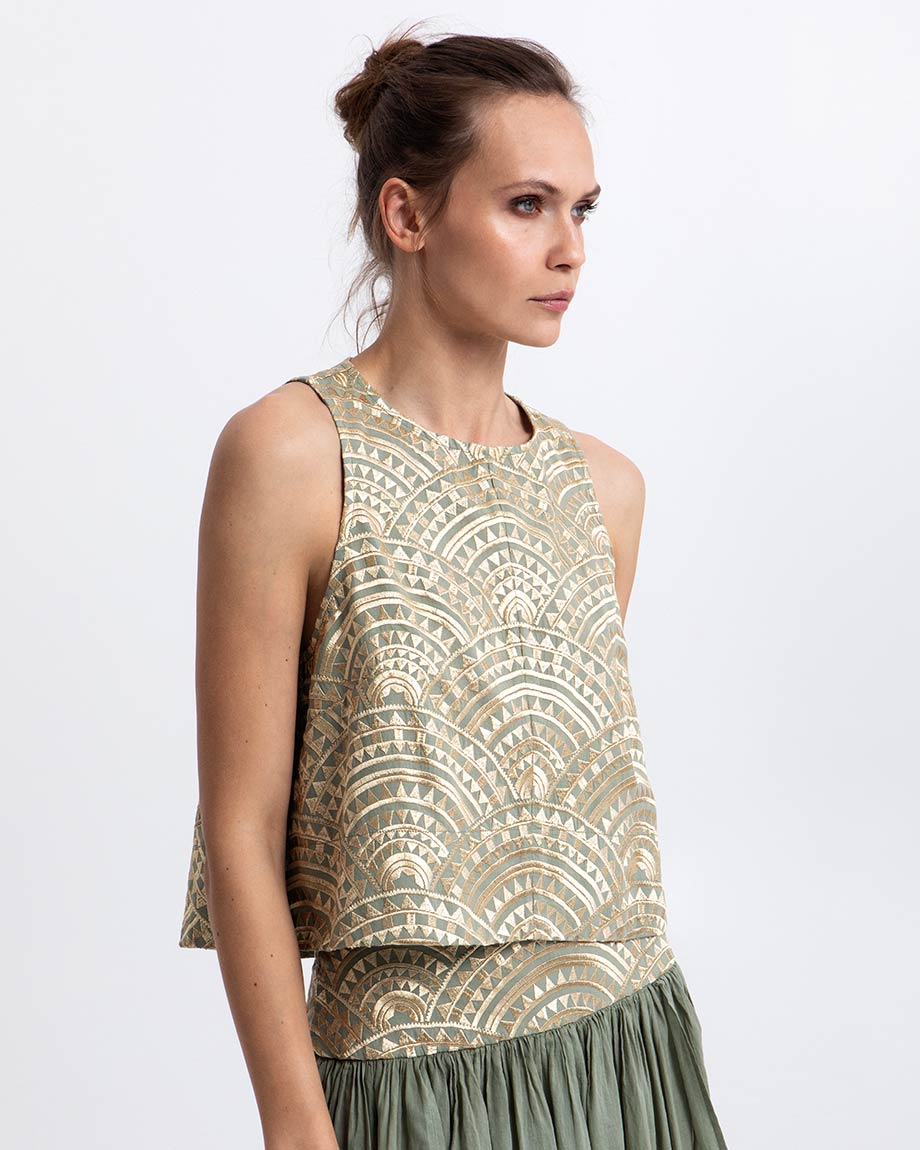 GREEK ARCHAIC TOP NEW TRIANGLE SLEEVELESS SAGE/GOLD