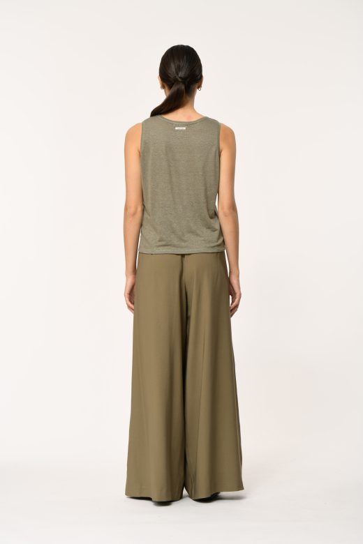 Loose tank top in slub linen, round neckline, straight cut.
