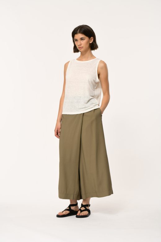 Loose tank top in slub linen, round neckline, straight cut.