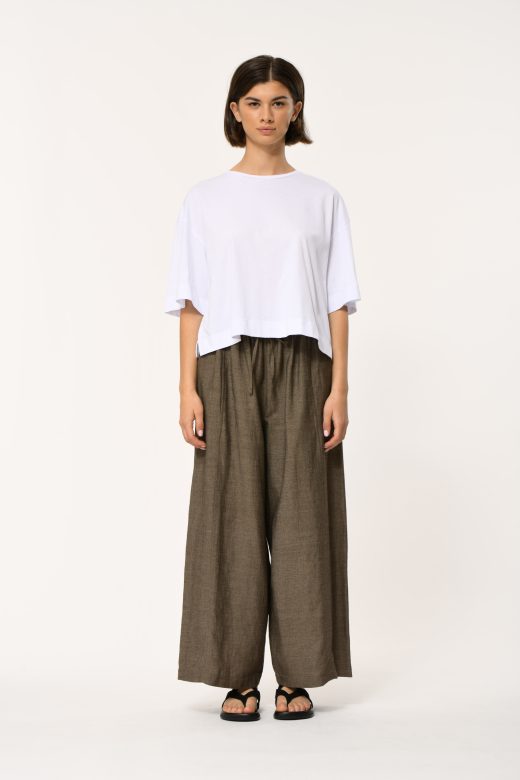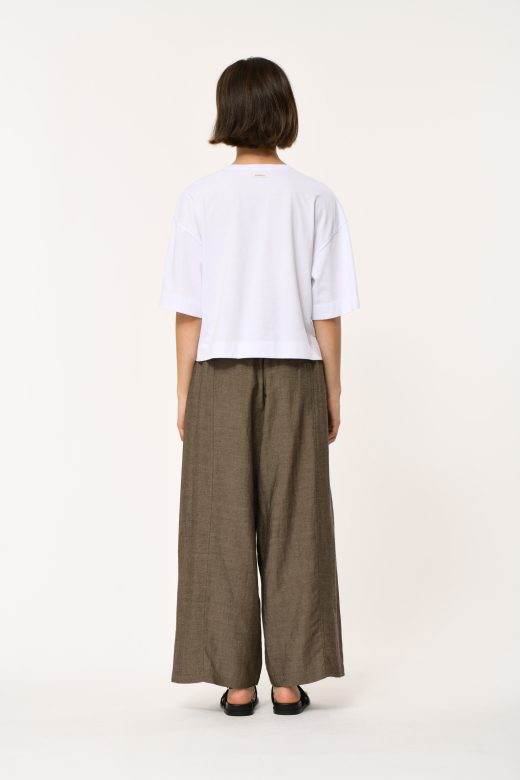 Organic cotton tee-shirt, oversized, straight fit, crew neckline, elbow-length sleeves, dropped armholes, GOTS certified.