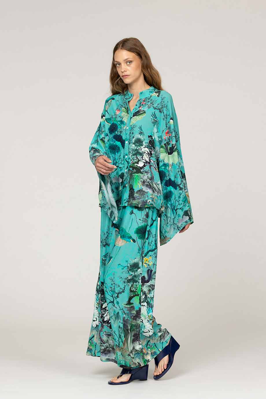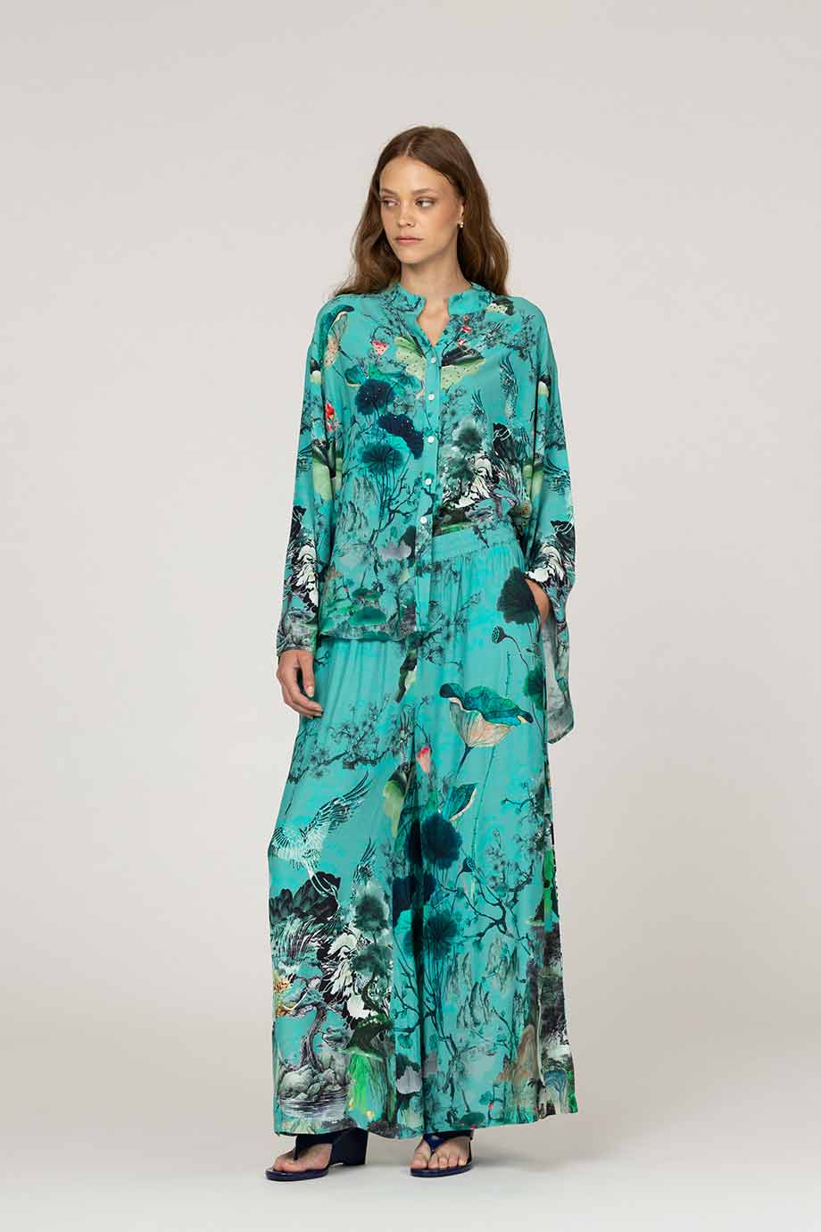 – Featuring a soft collared neckline, button-down front, and relaxed sleeves for an easy, breezy silhouette.