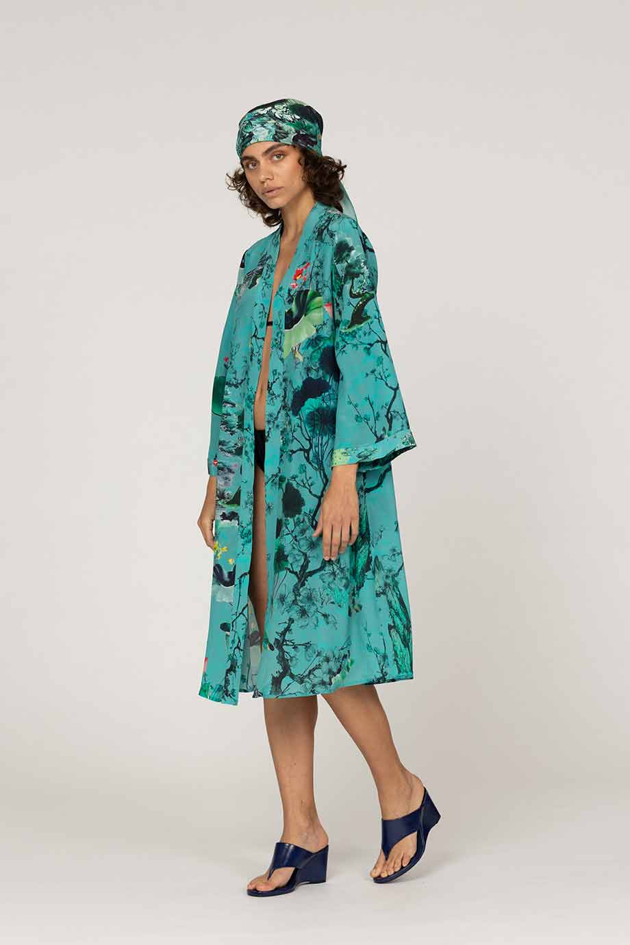 INOA LONG SILK KIMONO FLORA GREEN