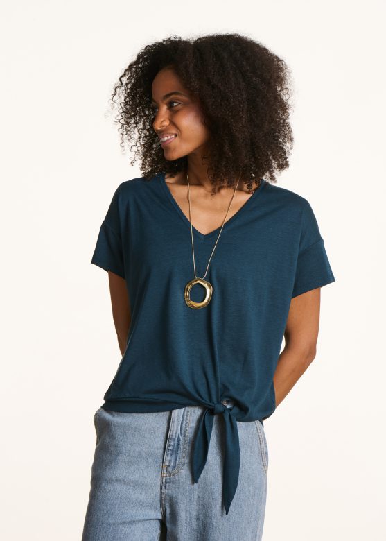 LOOSE-FITTING T-SHIRT, SHORT SLEEVES, V-NECK, TIES TO KNOT AT THE WAIST.