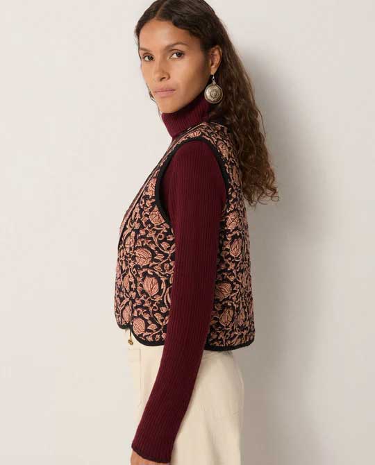 A sleeveless vest in cotton voile, structured yet featherlight. The fabric feels soft on the body, holding just enough weight to layer without bulk.