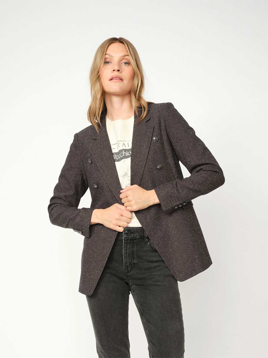 This blazer embodies the signature MOS MOSH aesthetic, designed in a double-breasted fit with an elongated, oversized silhouette. Detailed with beautifully embossed buttons, it exudes timeless sophistication with a modern edge. Style it with tailored trousers for a polished look or pair it with jeans for an effortlessly chic vibe.