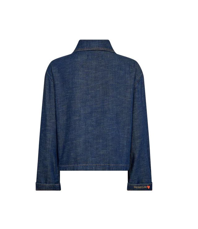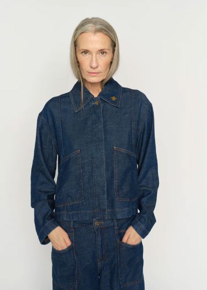 This denim-inspired jacket offers a refined take on casual dressing. Designed in a relaxed fit with a classic collar and button closure, it features clean lines and subtle stitching for a modern finish. Perfect for layering over dresses, knits, or tailored pants for effortless versatility.