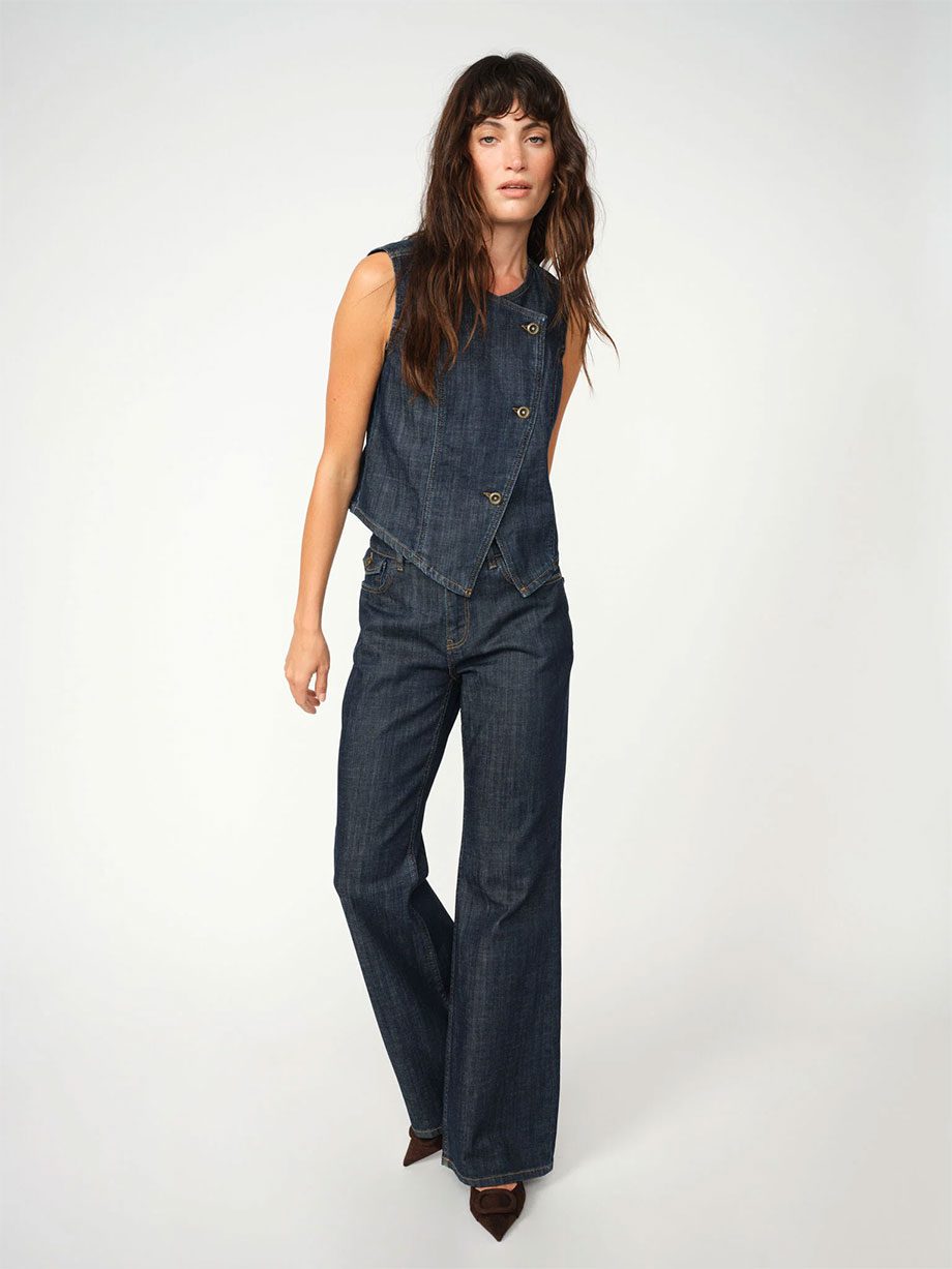 These deep blue jeans are crafted in a stylish flare fit with a mid-rise, creating a flattering and modern silhouette. Designed with classic pockets and a signature leather badge at the back, they exude effortless sophistication with a contemporary touch. Style them with a fitted blouse or a cosy knit for a polished yet laid-back ensemble.