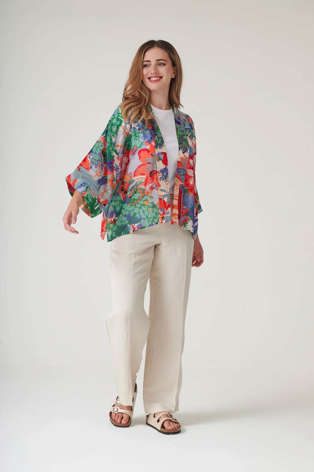 Our bestselling kimono jackets have loose ¾ length sleeves, an open front and a lightly embroidered lapel. Pair with a matching camisole and your favourite jeans in summer or layer over a polo neck during the cooler months.