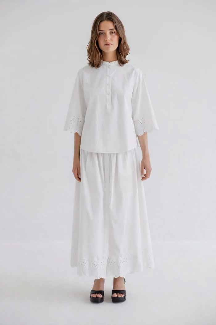 Pair the skirt with one of our organic shirts with the same embroideries – Helen or Honey shirt or Holly top.
