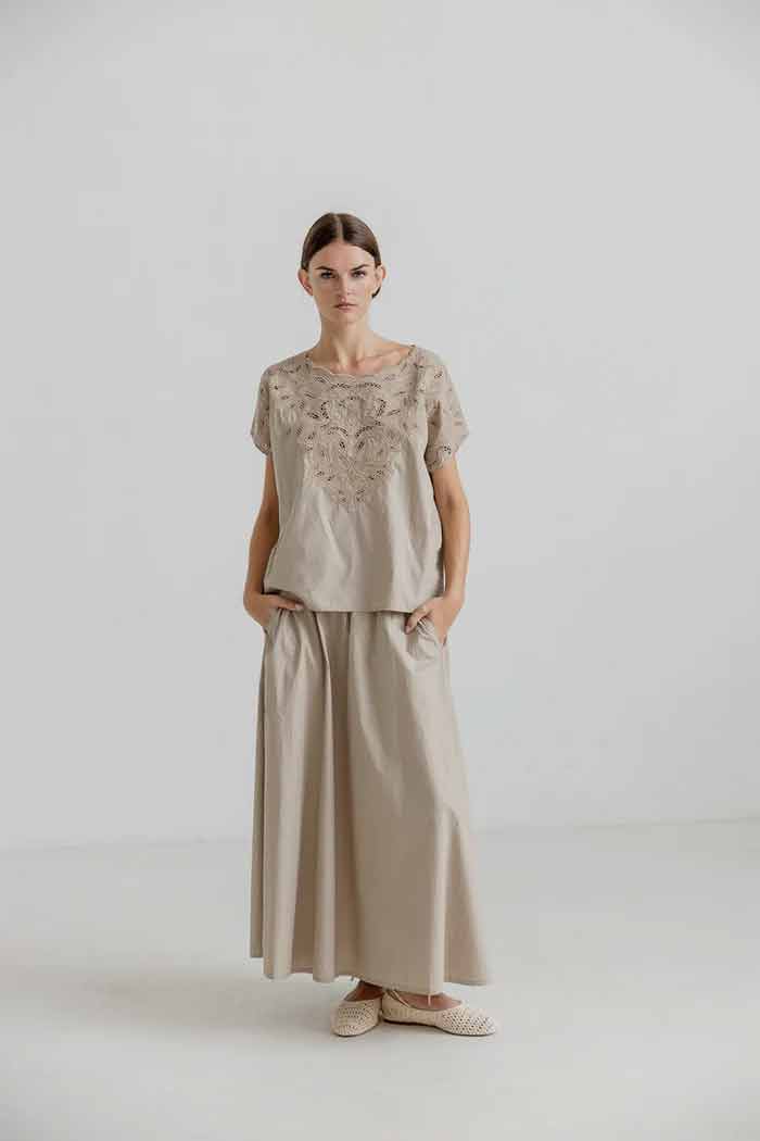 HAILEY is a midi length skirt with pockets and an elastic waist. The skirt is part of our basic collection made of 100% organic cotton.