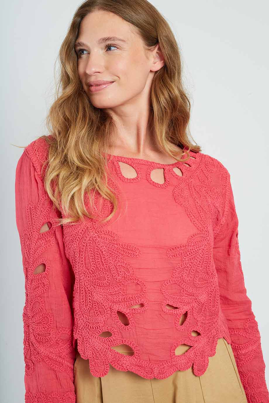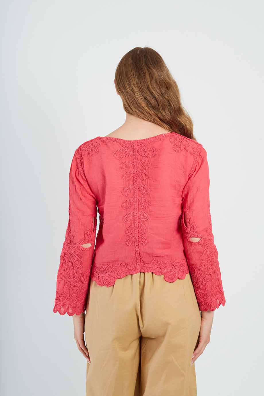 Embroidered long sleeve blouse by Rene Derhy.