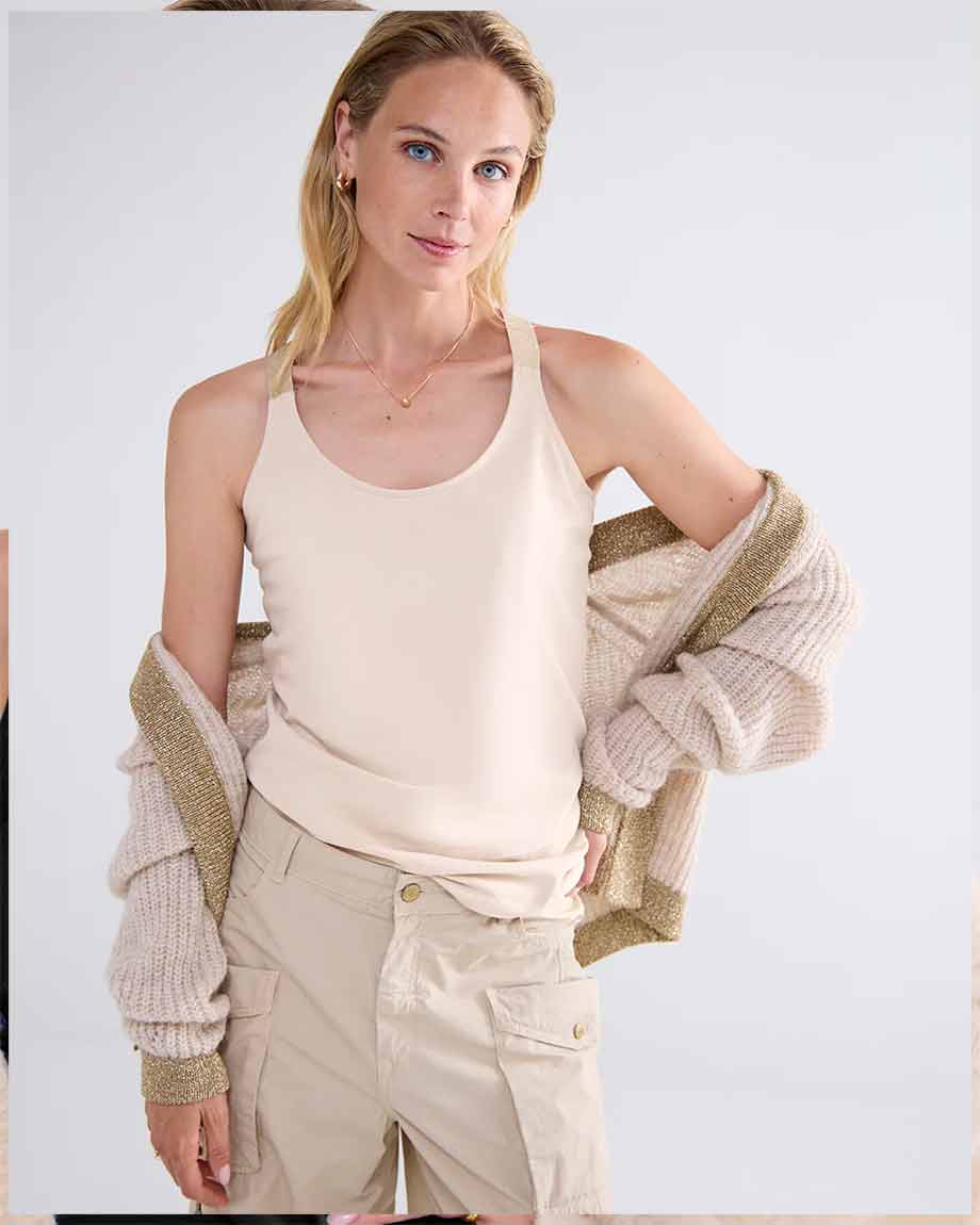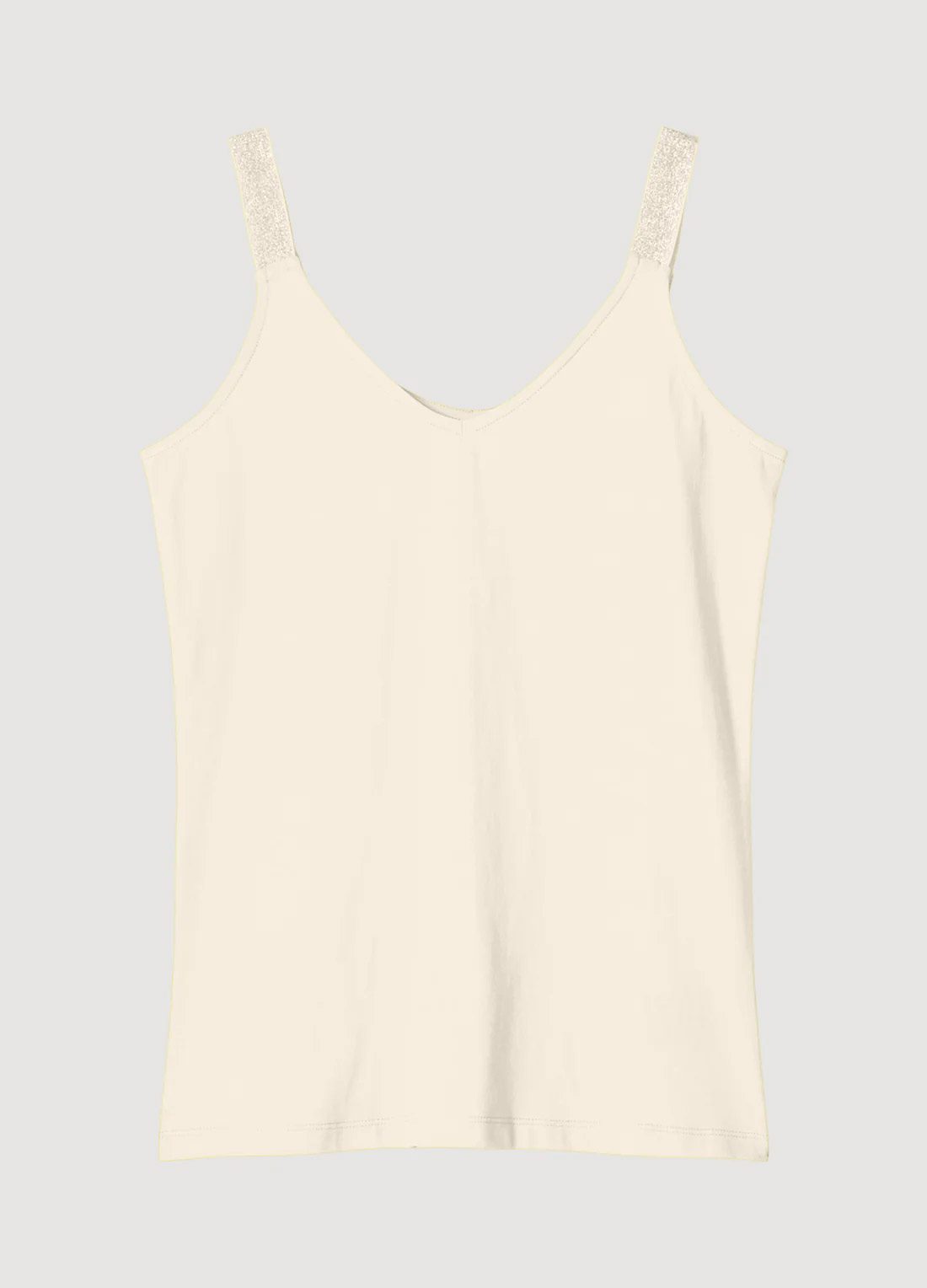 Classic top with glitter straps that can be worn on both sides. The singlet is made of stretch cotton and has a slim fit.