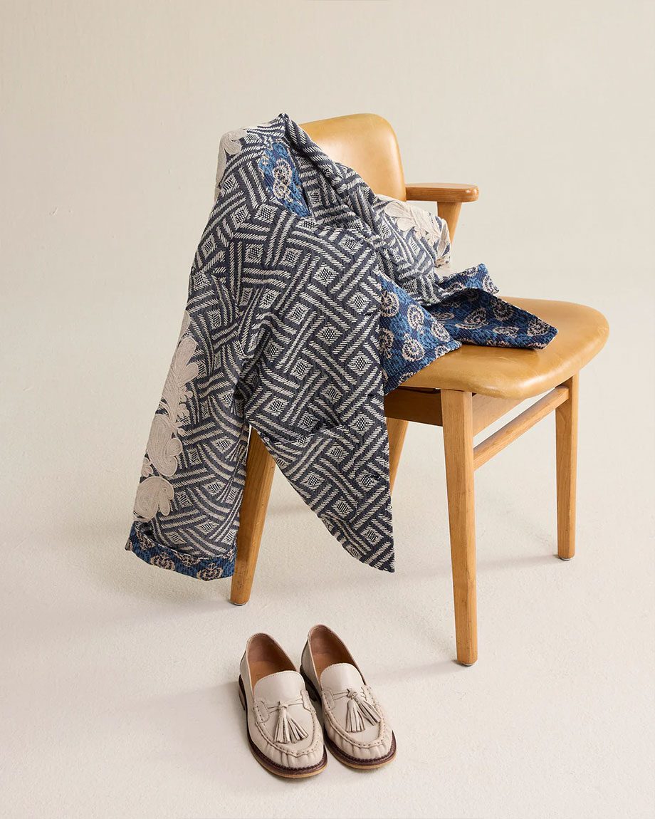 • Reversible design: jacquard and block print