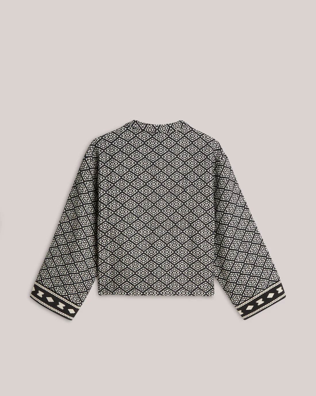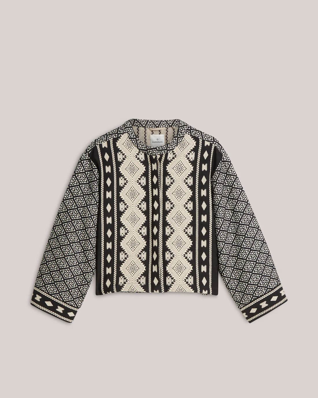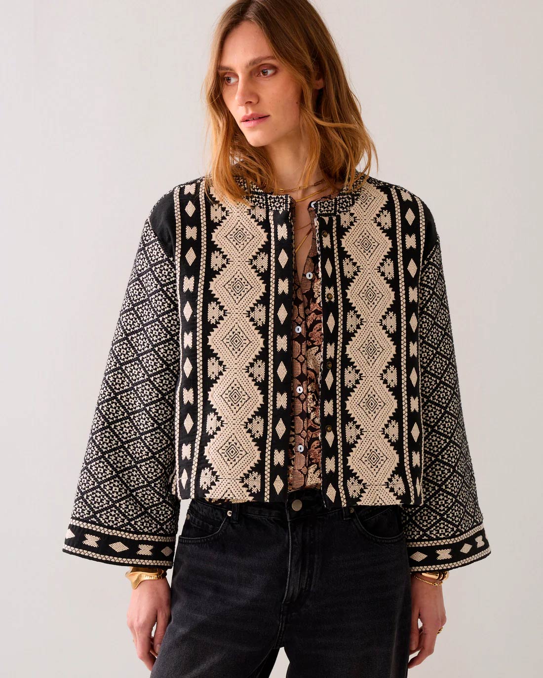 Reversible kimono jacket in a sturdy jacquard blend with a rich, woven texture. The jacket has a transparent lining on the inside.