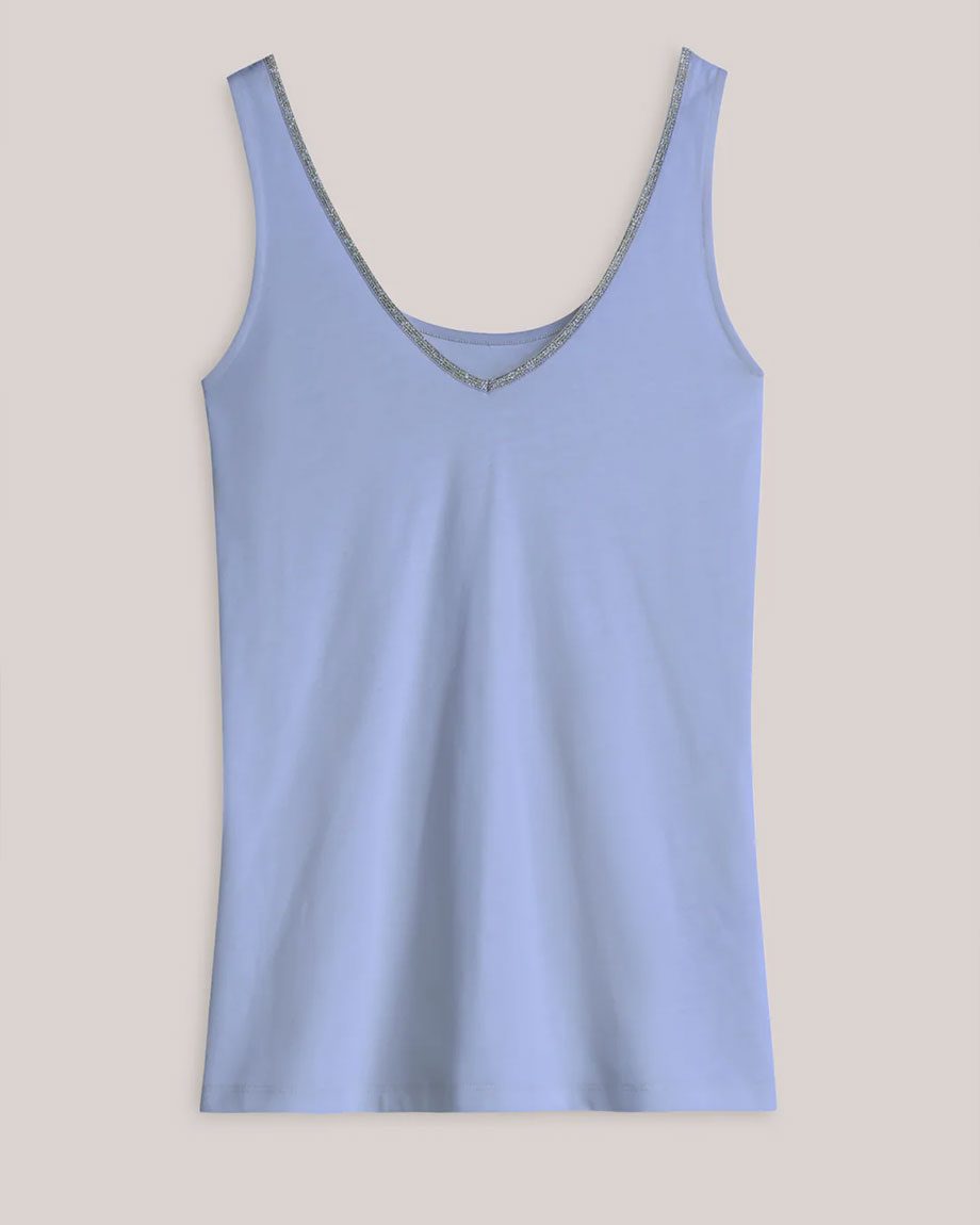 SUMMUM WOMAN REVERSIBLE SINGLET WITH GLITTER TRIM SOFT BLUE