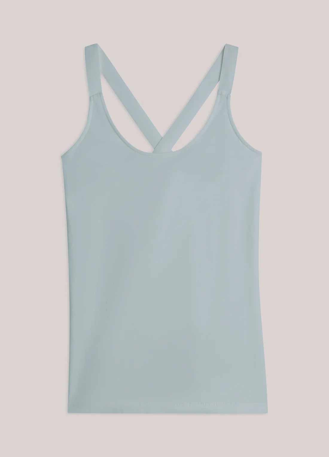 Basic singlet with a cross band at the back, made of cotton elastane jersey fabric. This slim-fit top has eye-catching glittery straps.