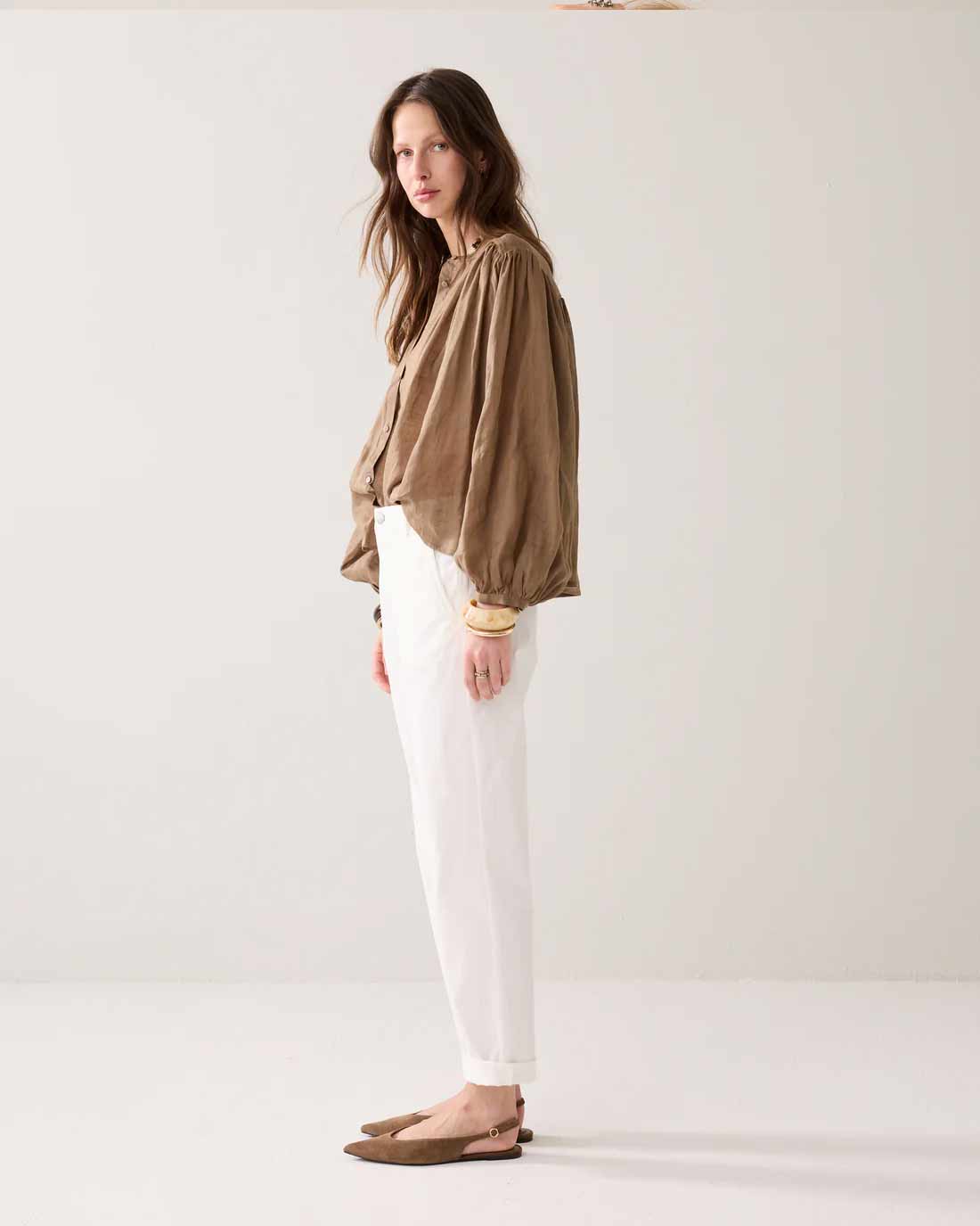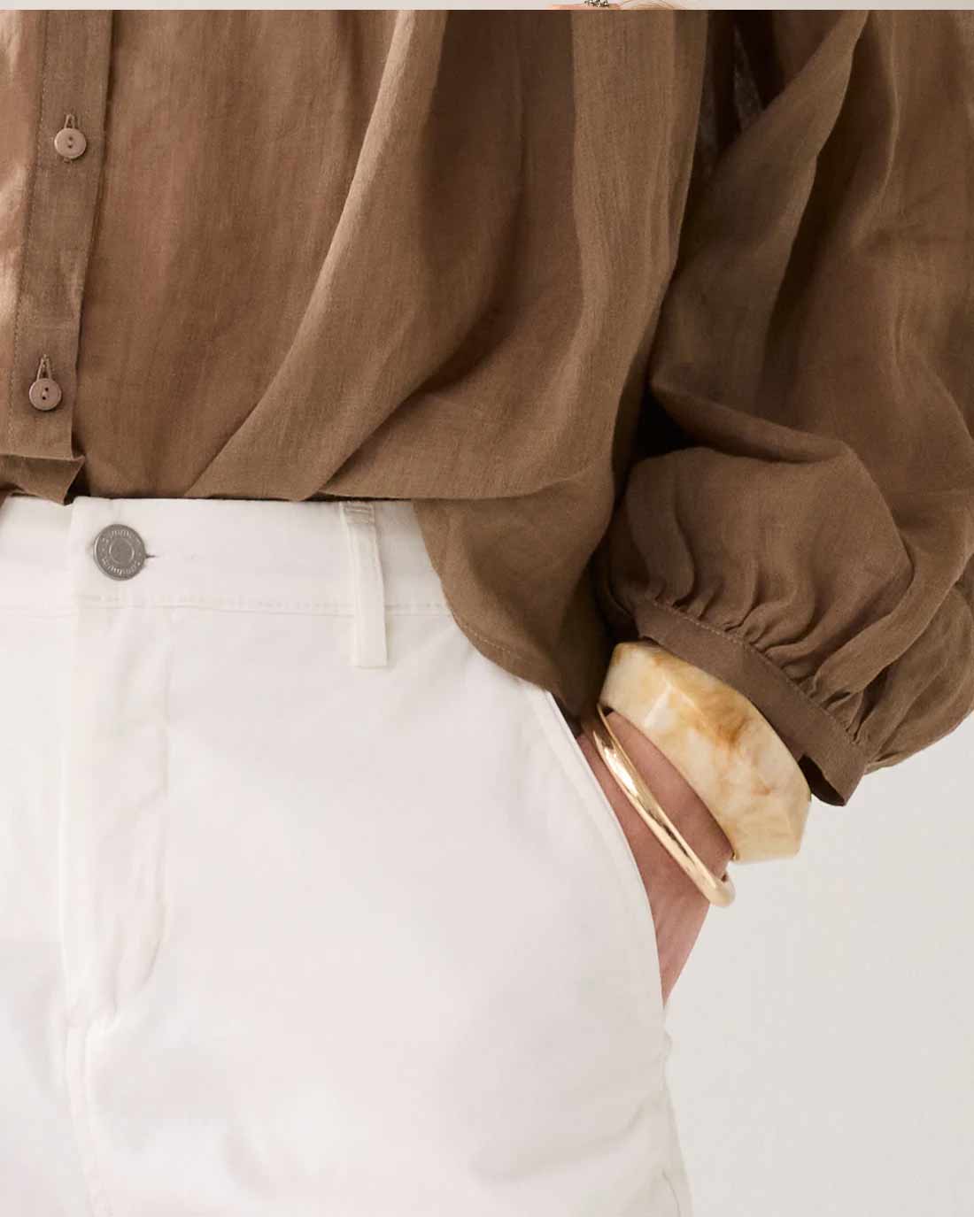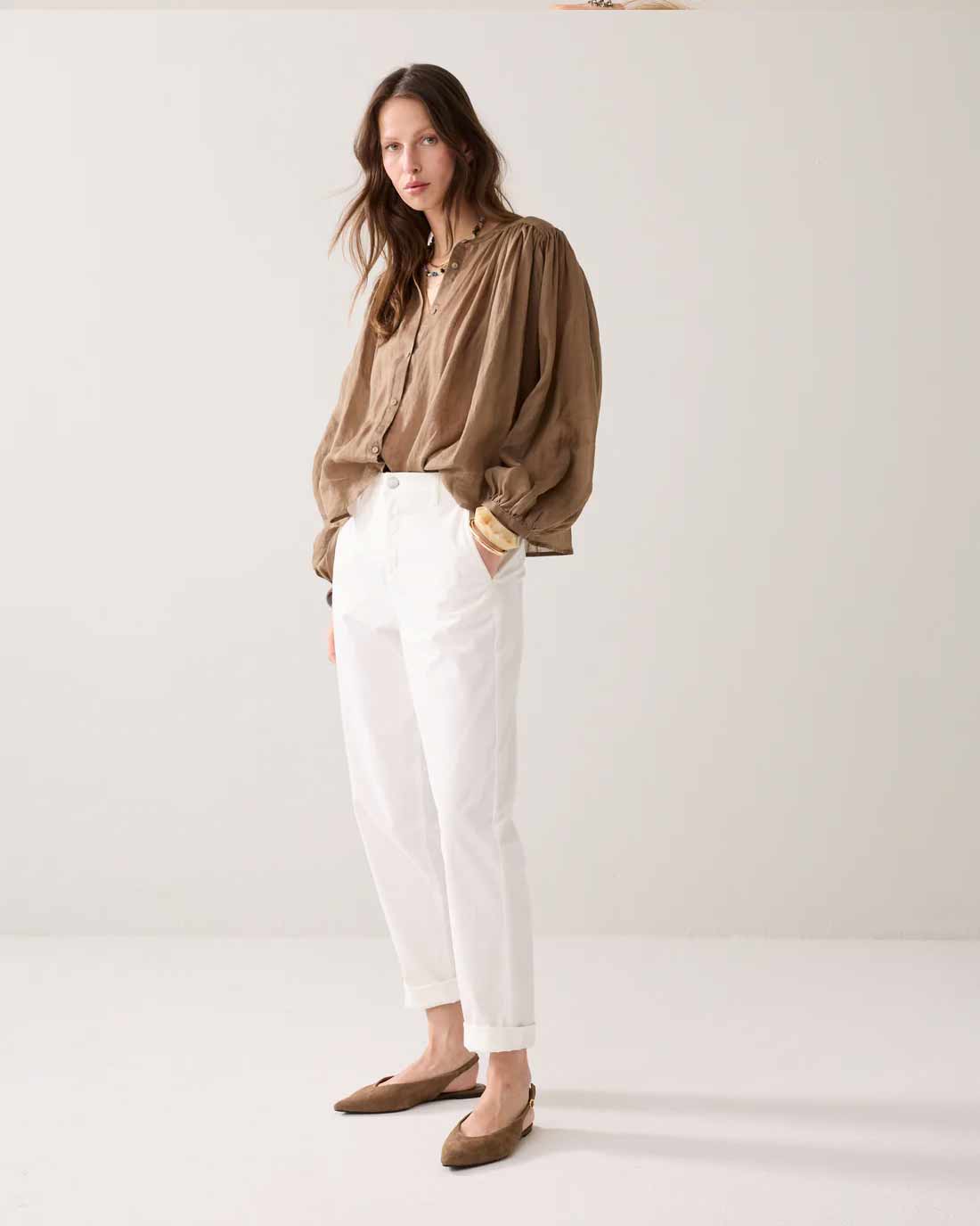 Trousers in a soft cotton elastane twill with a chino look. The trousers have a low waist and a narrow tapered fit.